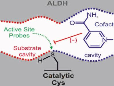 We uncovered a strong correlation between enzymatic activity and active site labelling for aldehyde dehydrogenases, with one remarkable exception: nicotinamide cofactors suppress active site labelling.